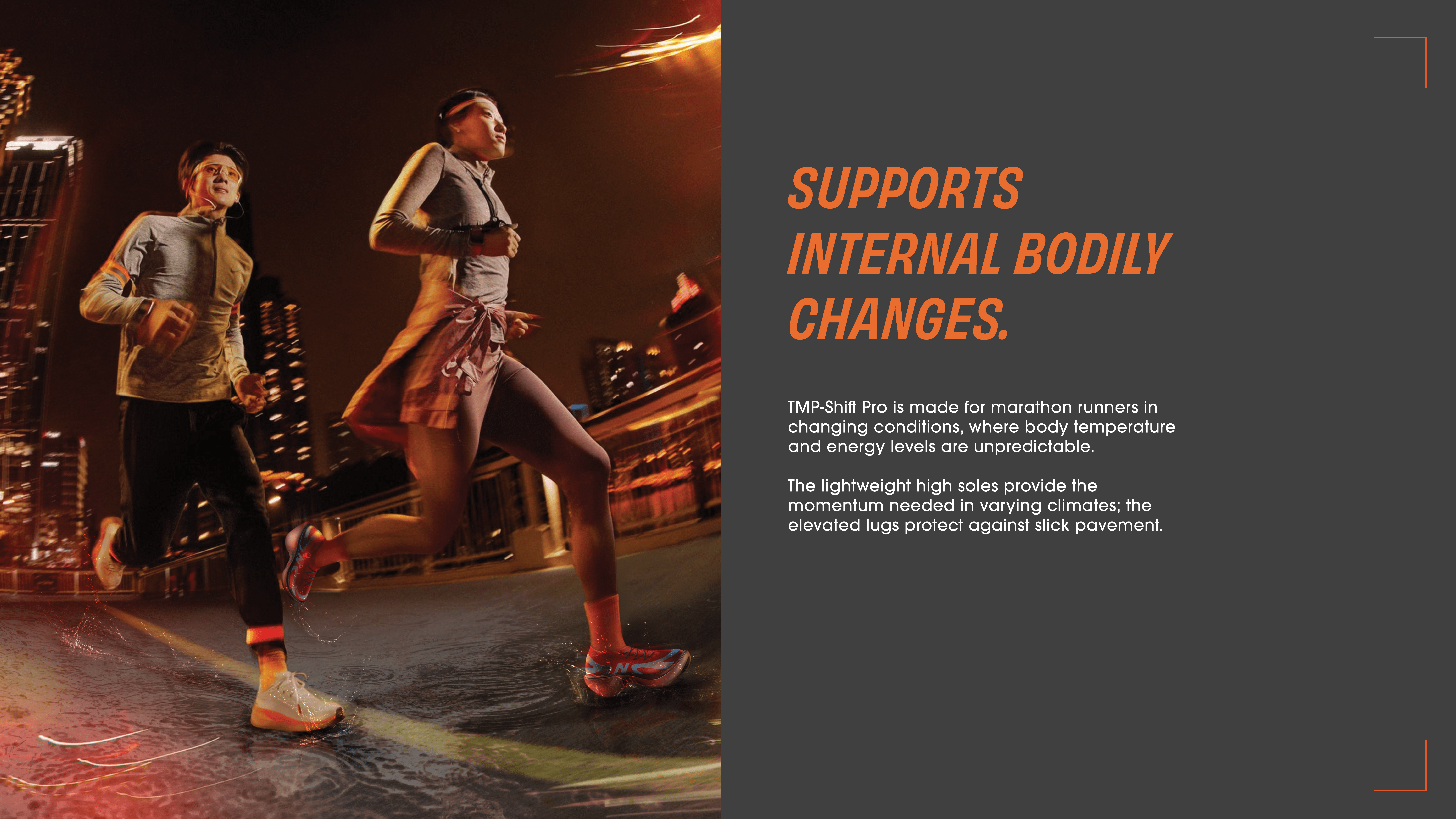 A marathon shoe designed to adapt to both body and environment.